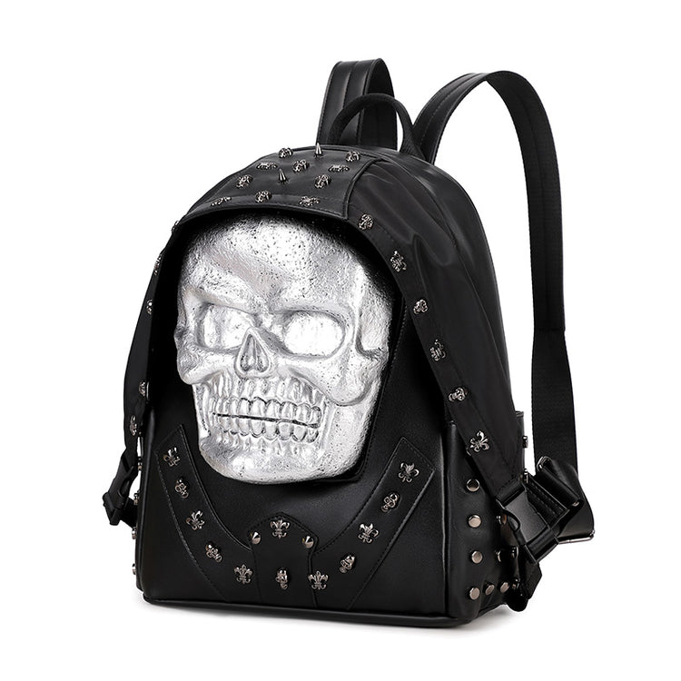 3D Backpack 3D PU Leather Skull Studded Computer Backpack