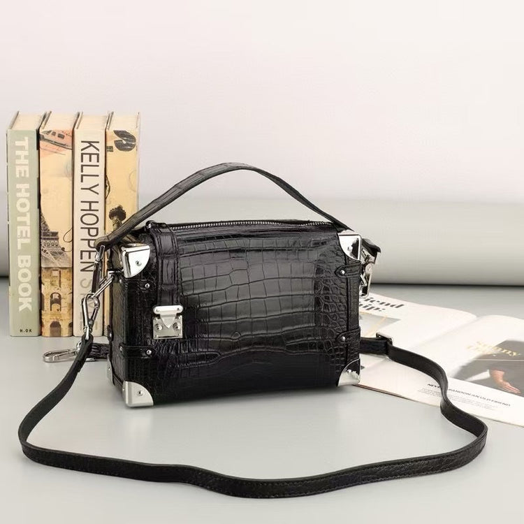Borsa a tracolla quadrata unisex in vera pelle di coccodrillo