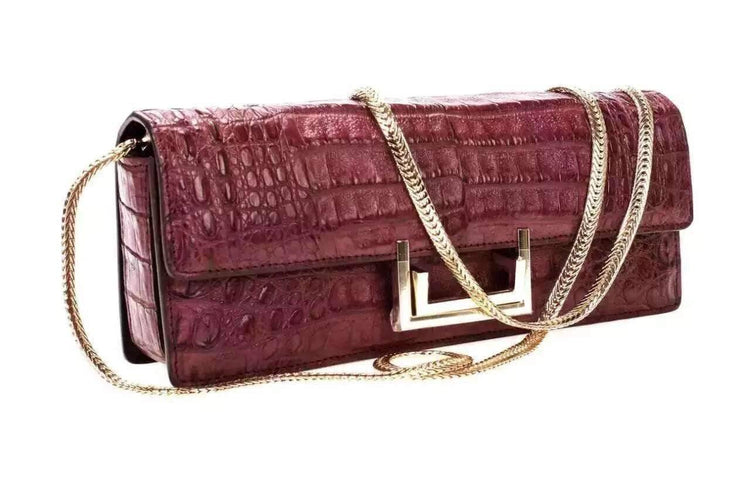 Pochette da donna in vera pelle di coccodrillo con tracolla a catena