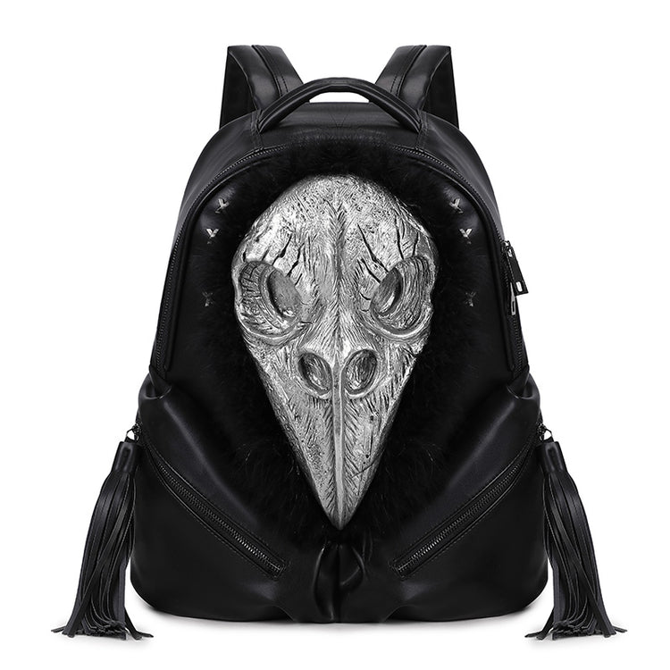 3D Backpack 3D PU Leather Beak Skull With Feather Computer Backpack