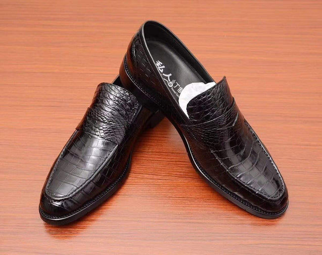 Stunning Exotic Crocodile Leather Black Casual Drive Shoes