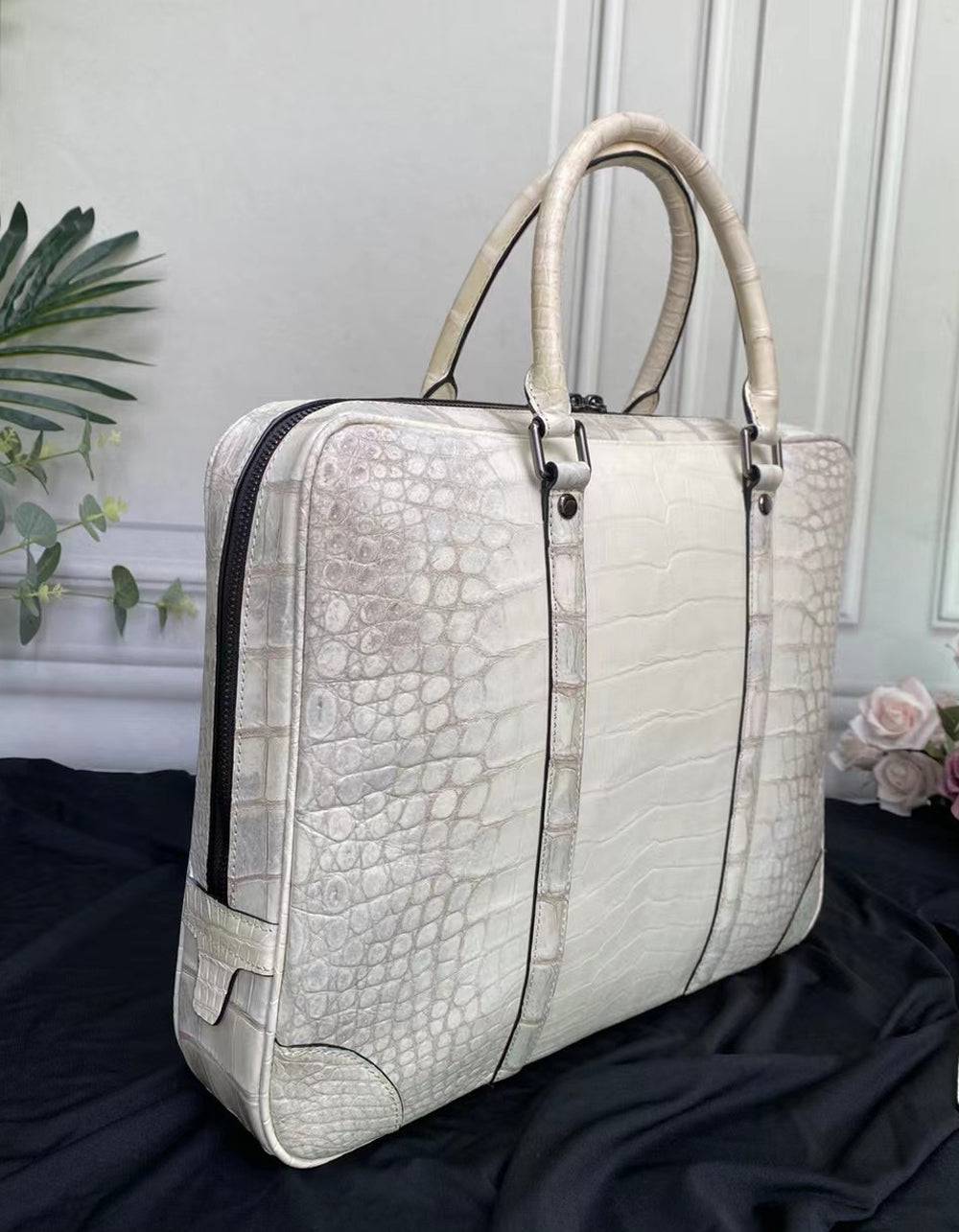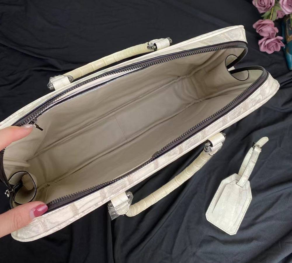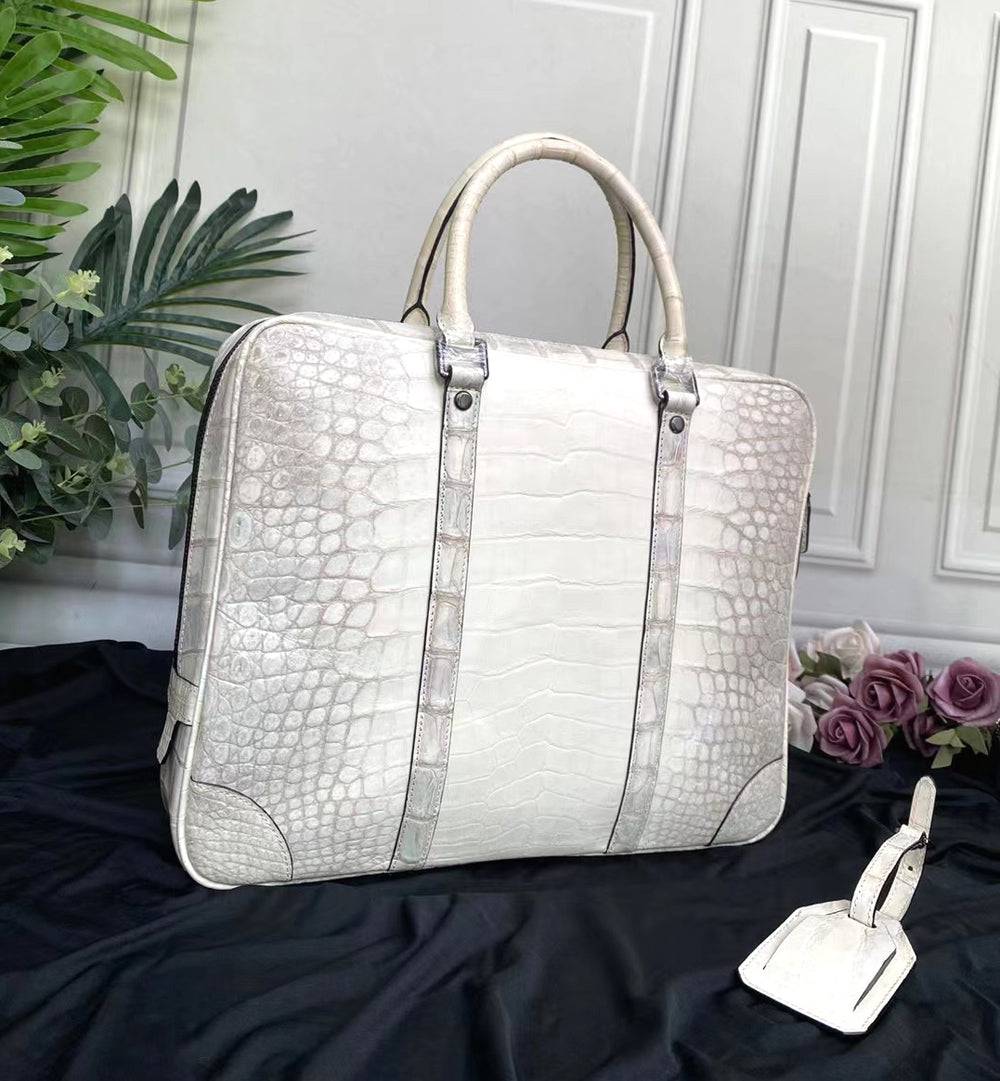 Bag: Genuine Crocodile Leather Laptop Briefcase With Passcode Lock Himalaya White
