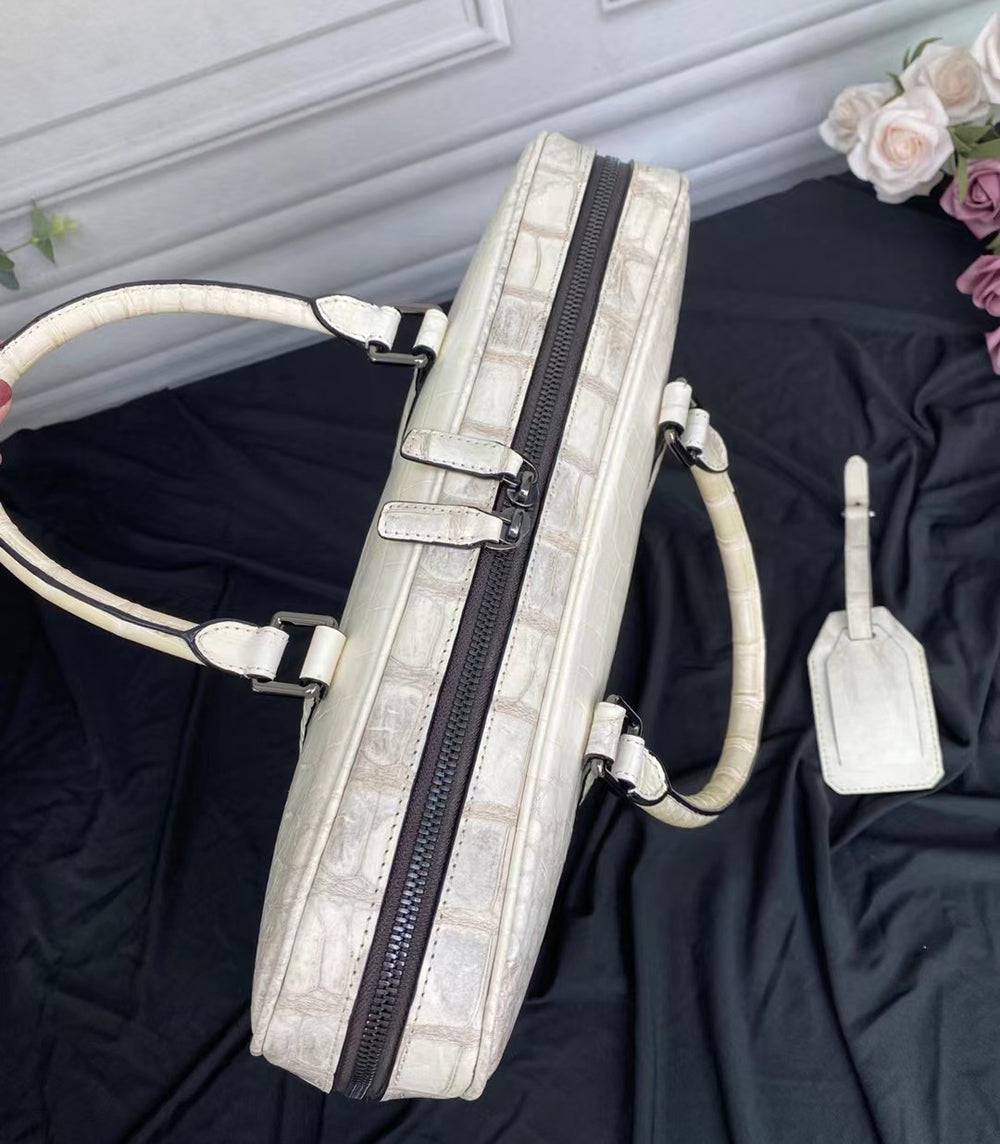 Genuine Crocodile Leather Laptop Briefcase With Passcode Lock Himalaya White