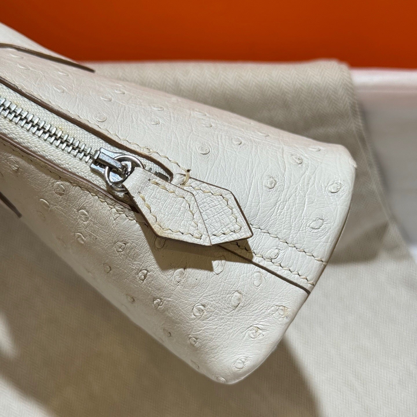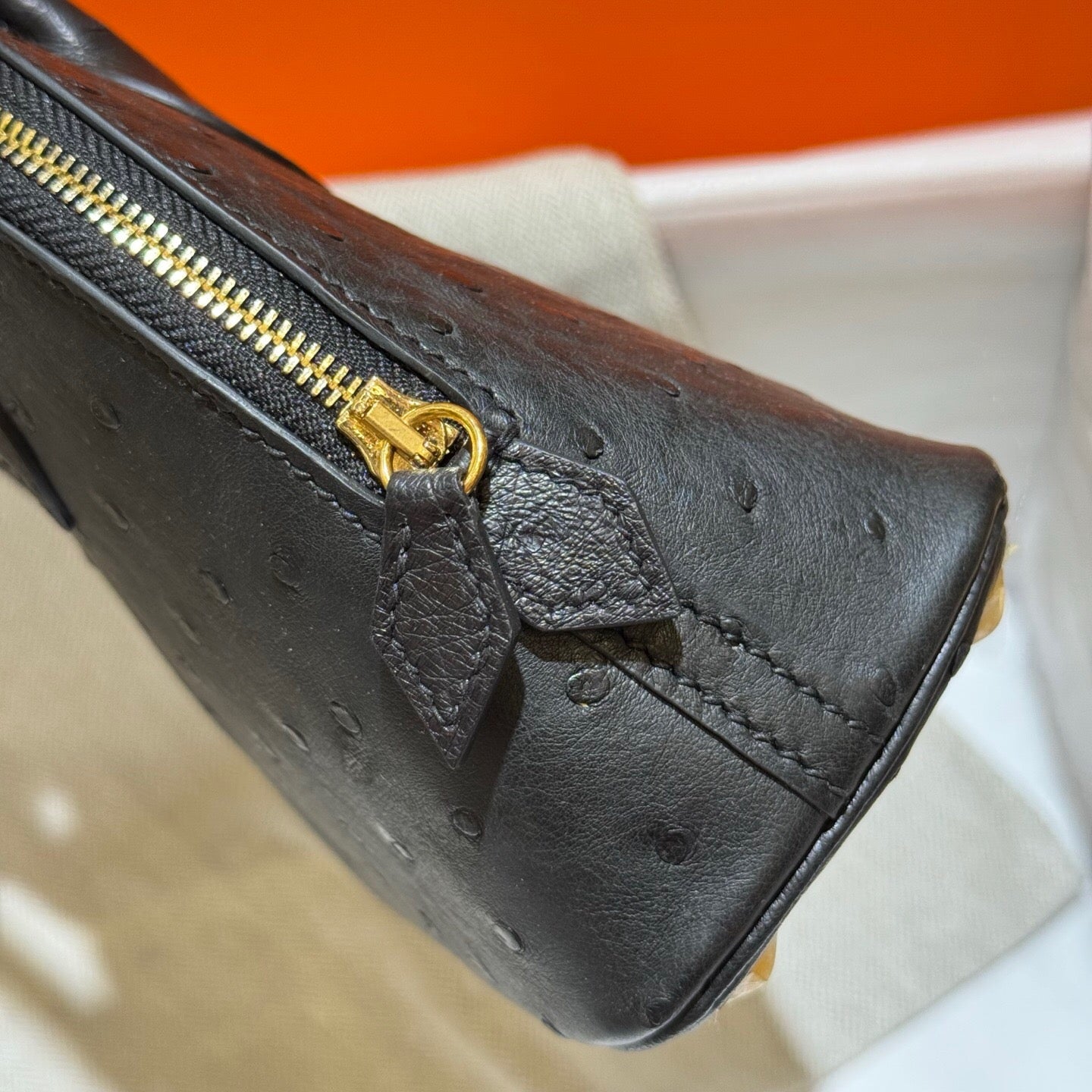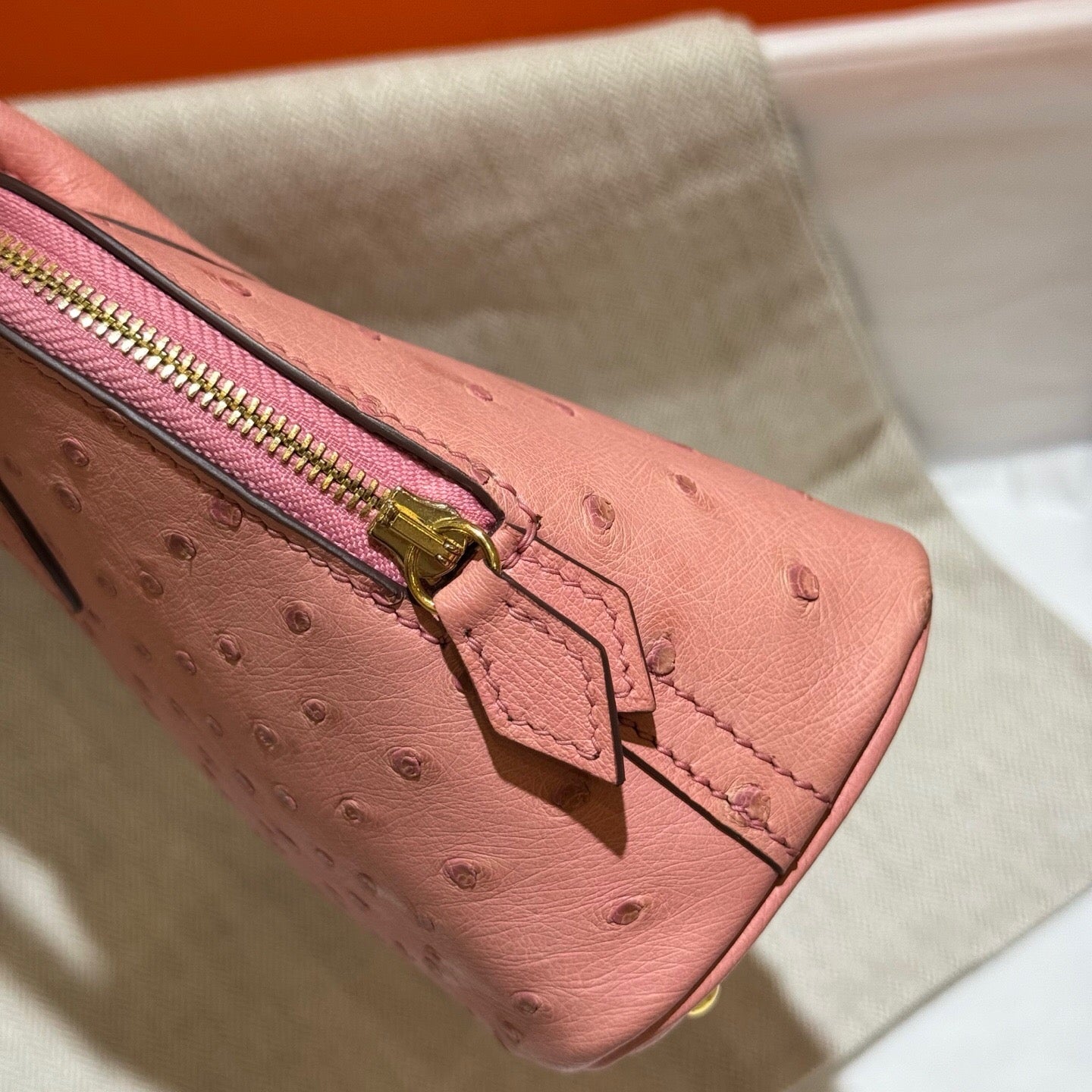 Womens Genuine Ostrich SKin Leather Shell Promennade Trapezoid Cross Body Bag Mini