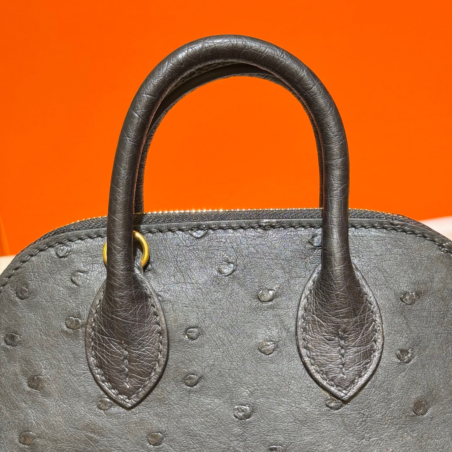 Name: Womens Genuine Ostrich SKin Leather Shell Promennade Trapezoid Cross Body Bag Mini