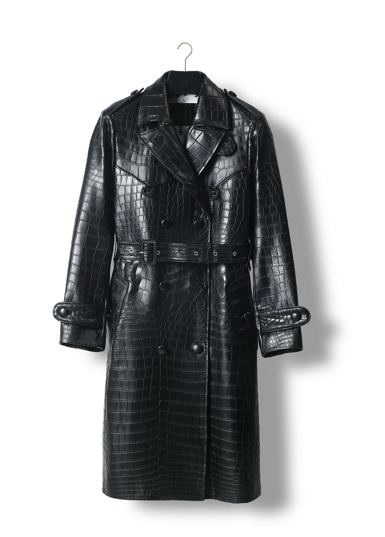 Áo khoác gió da bụng cá sấu thật là sản phẩm vượt thời gian. Nó có thể mang đến cho bạn vẻ ngoài độc đáo thể hiện rõ cá tính của bạn. Áo khoác gió da cá sấu Nile dài này có sẵn trong kho. Cũng có thể đặt may theo yêu cầu nếu size có sẵn không phù hợp với bạn.
