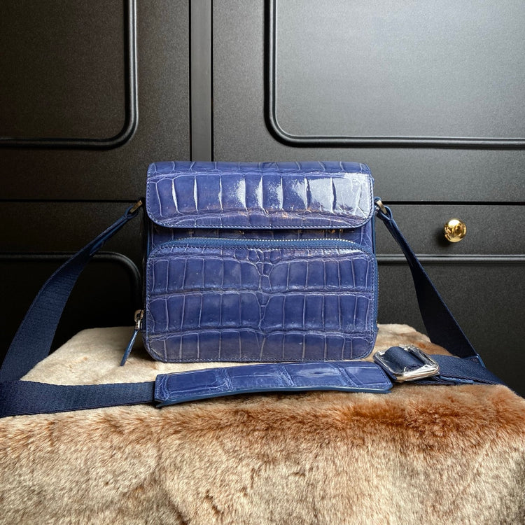 High Shiny Genuine Crocodile Skin Leather Cross Body Shoulder Bag Xanh dương