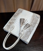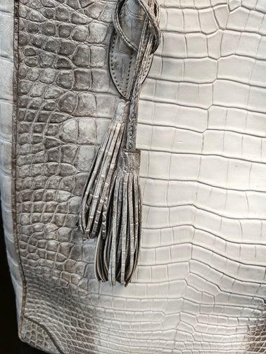 - Exotic beautiful genuine Himalaya white crocodile belly leather with silver hardware.