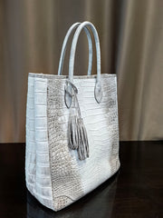 Unisex Large Crocodile Leather Laptop Business Briefcase Shopper Tote Bag Himalaya White