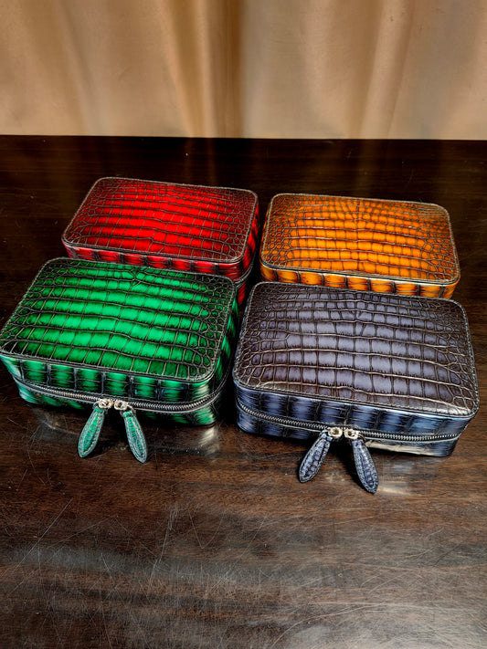 Genuine Crocodile Leather Cigar Case 2pcs/set