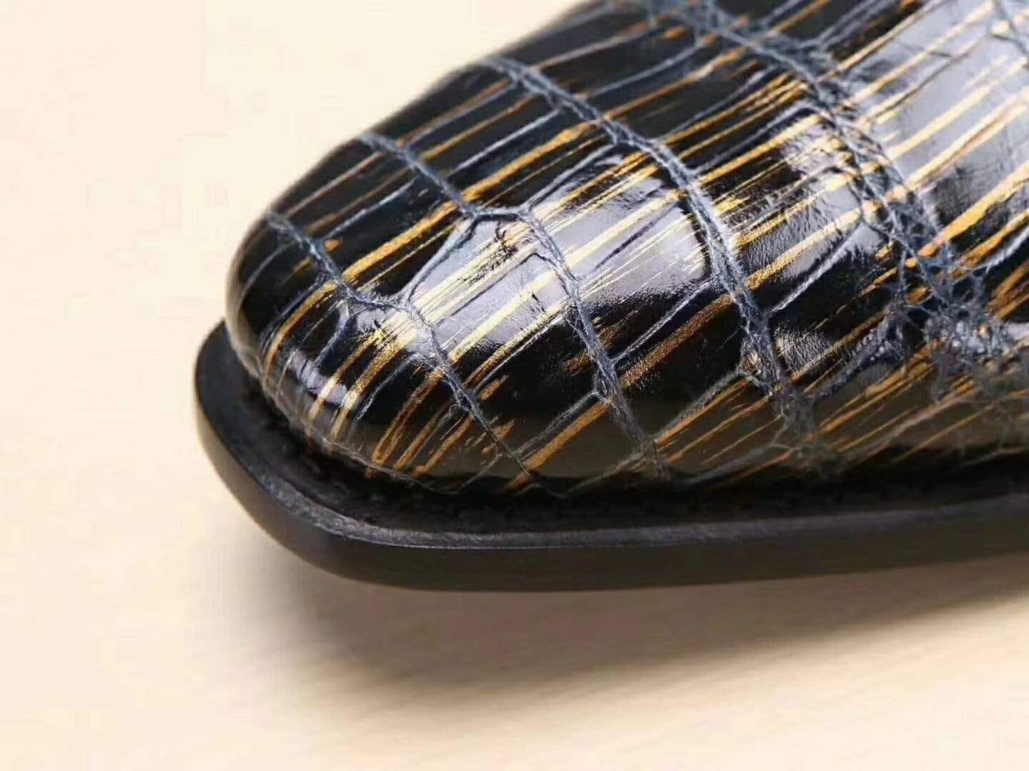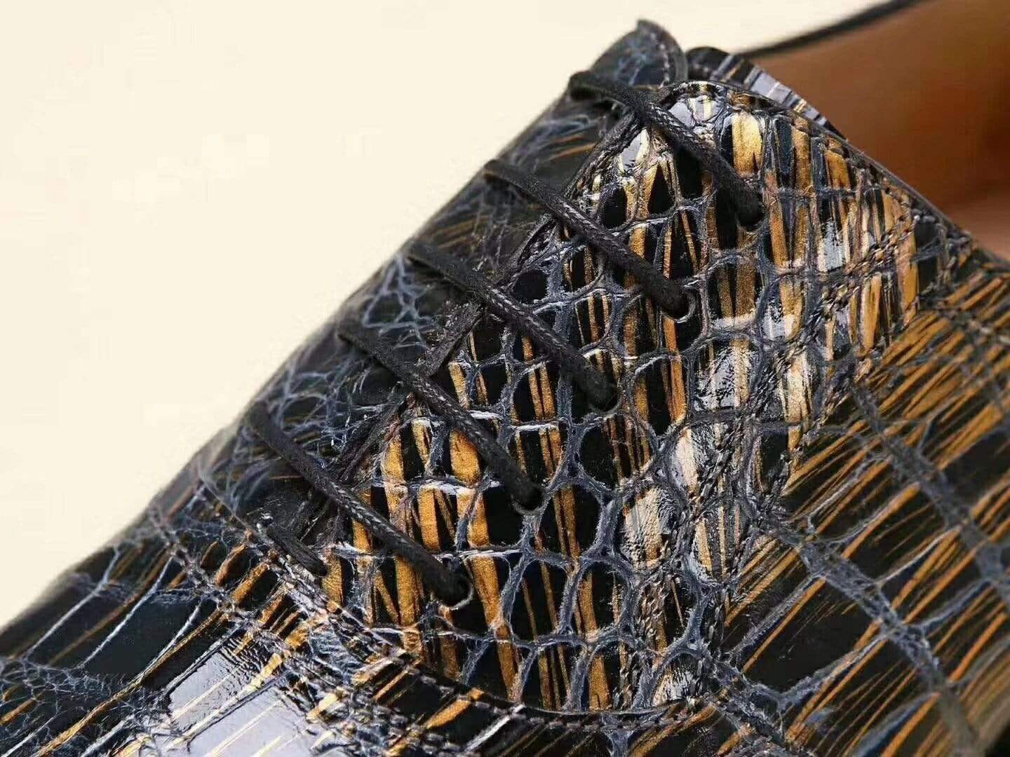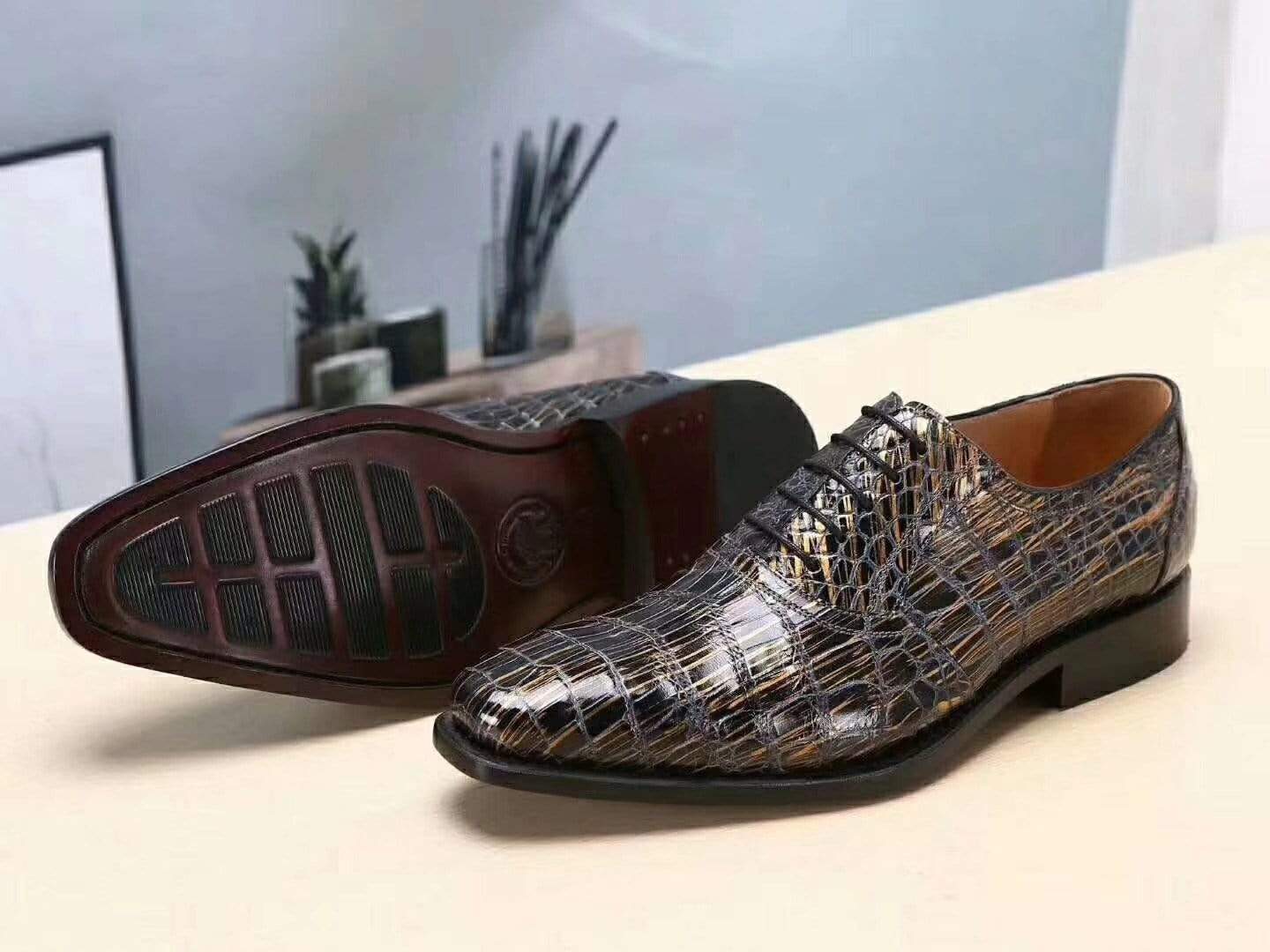 Crocodile Shoes Men s Crocodile Leather Gold burnishes Lace-Up Shoes ,Goodyear Sole