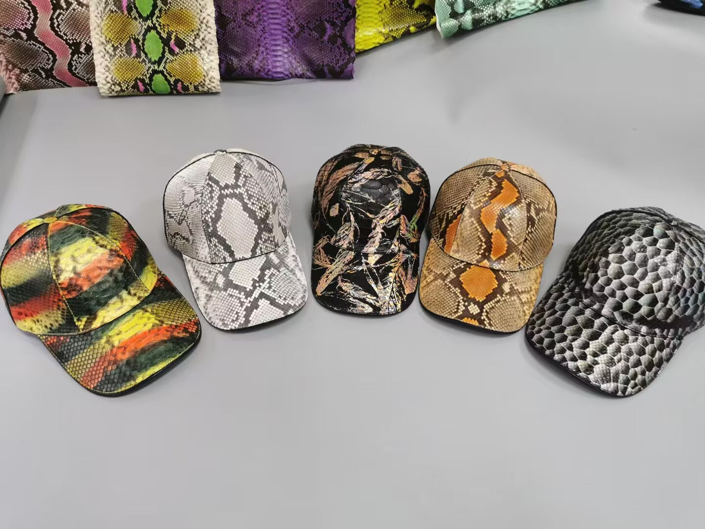 100% genuine Python skin belly leather baseball cap featuring an adjustable back strap for a comfortable and secure fit.