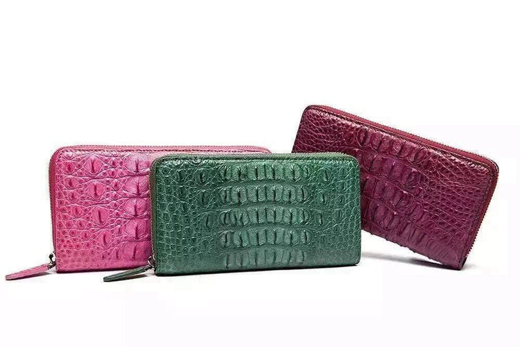 Womens Genuine Crocodile Leather Large Zip Around Wallet For Women