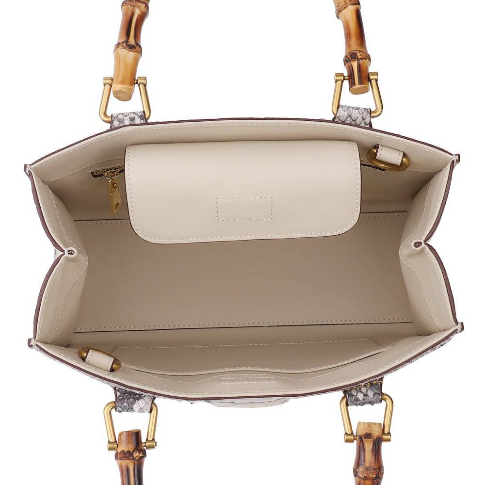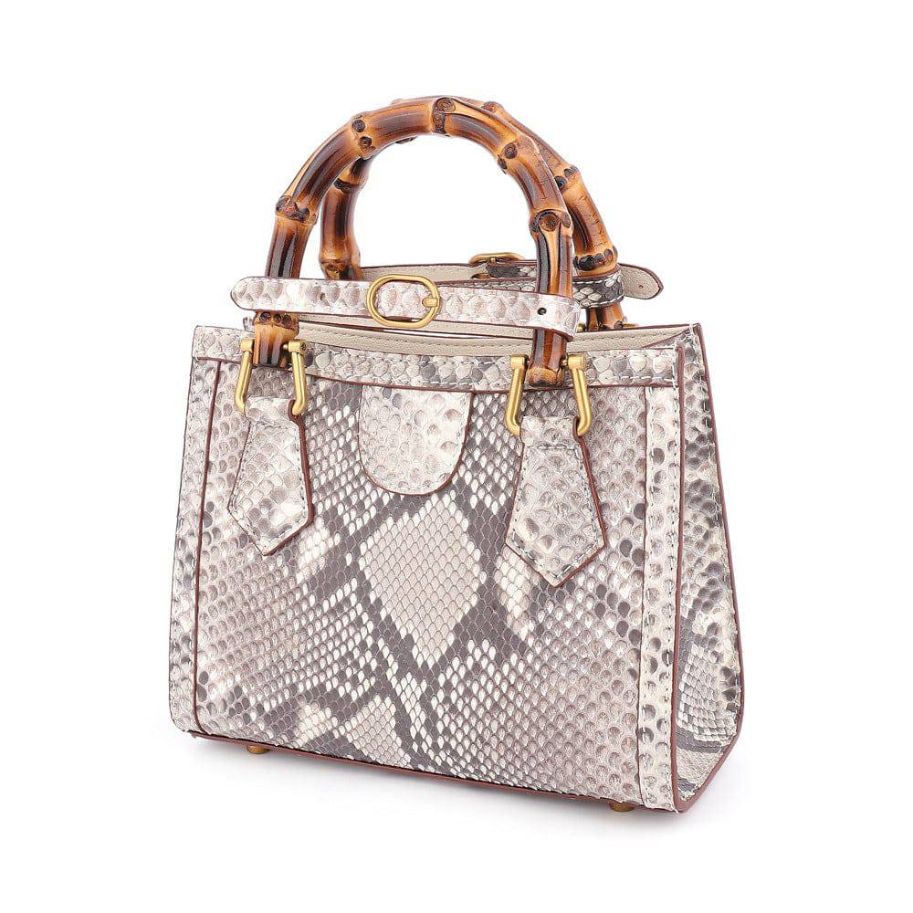 Bag: Womens Python Leather Bamboo Bag Mini Top Handle Cross Body Handbag