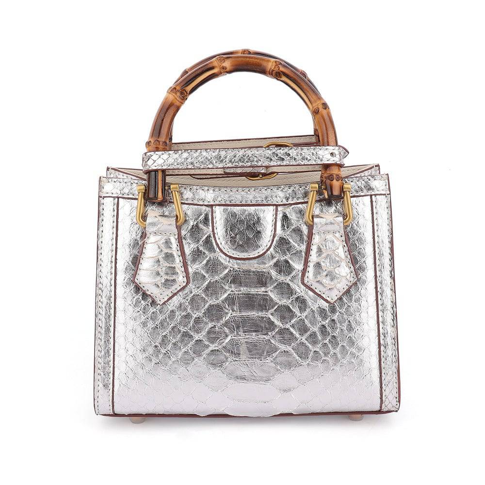 Womens Python Leather Bamboo Bag Mini Top Handle Cross Body Handbag