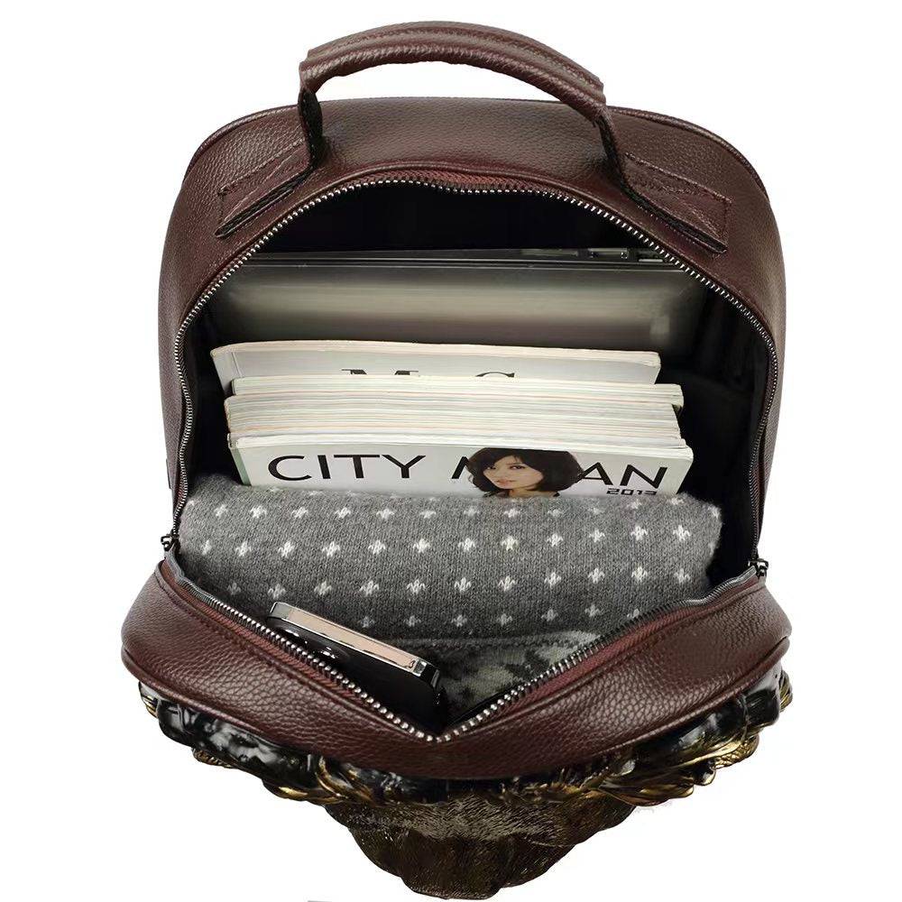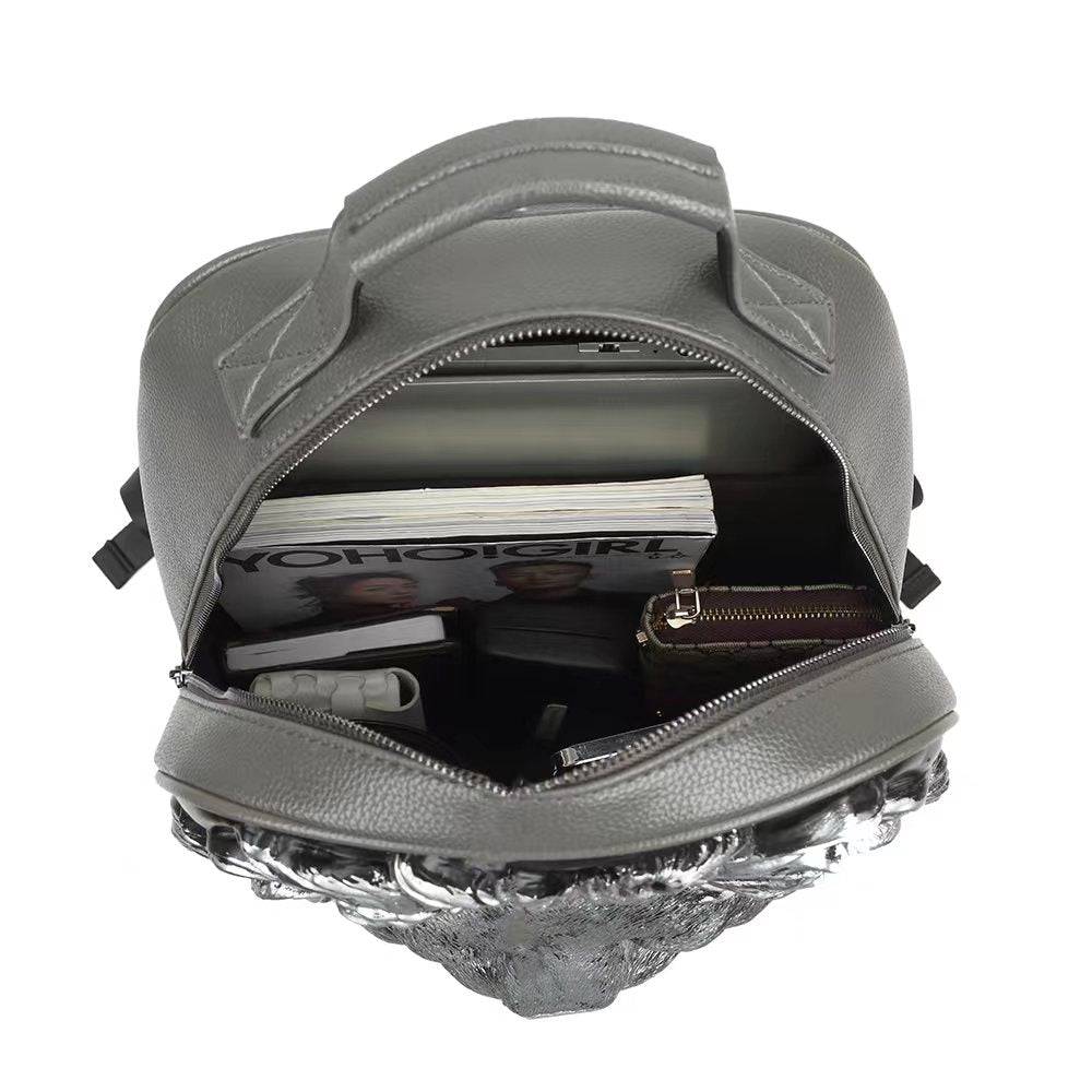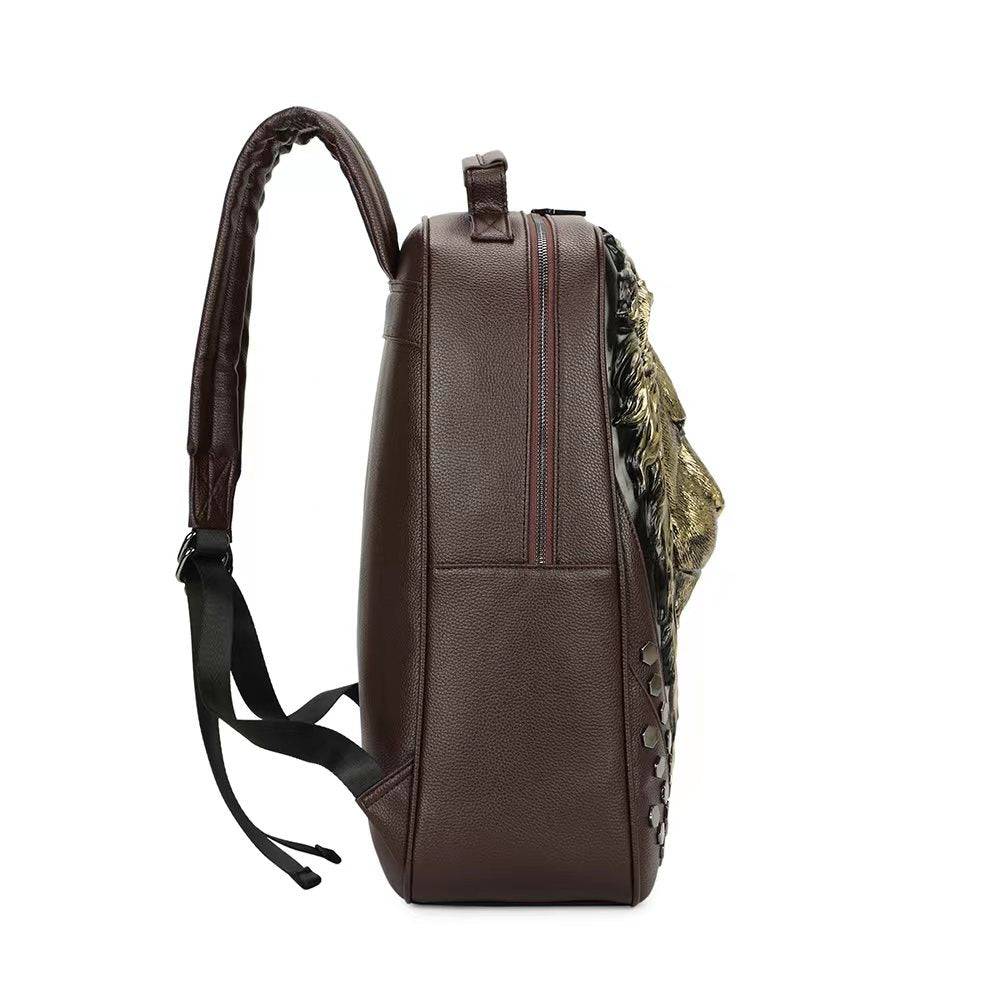 3D Backpack Soft PU Leather Lion Studde Flat Travel Punk Backpack Laptop Bag