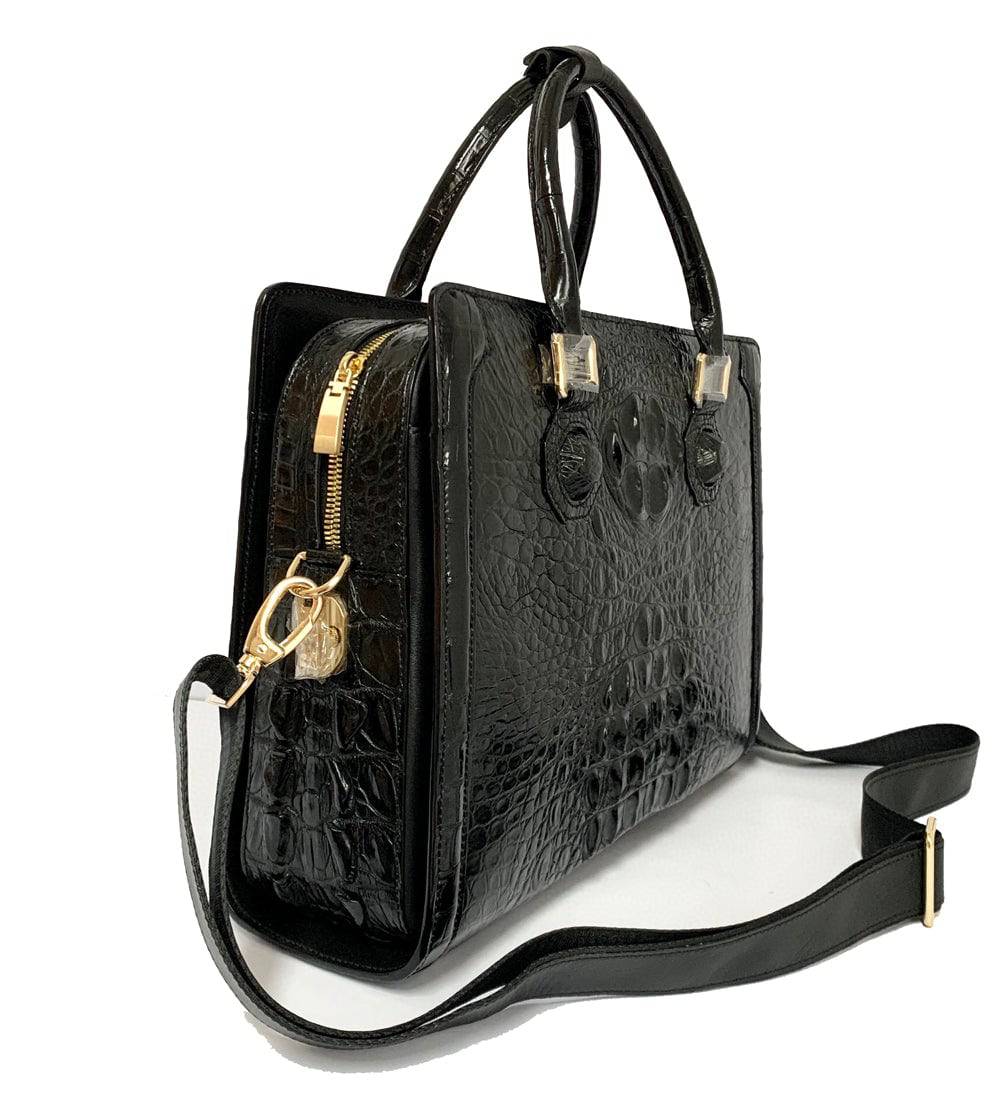 • Exotic beautiful genuine crocodile skin bone leather with golden hardware.
