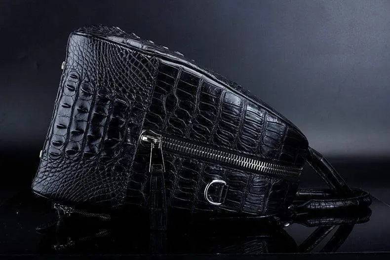 Crocodile Leather Travel Bag Black