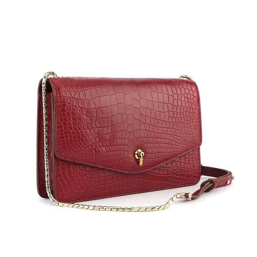 Genuine Crocodile Leather Cross Body Messenger Flap Shoulder Bag Red