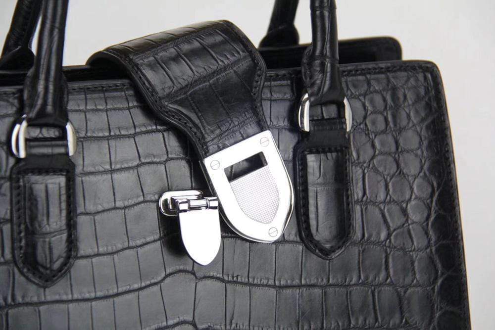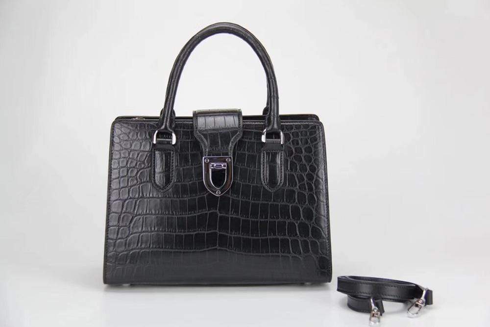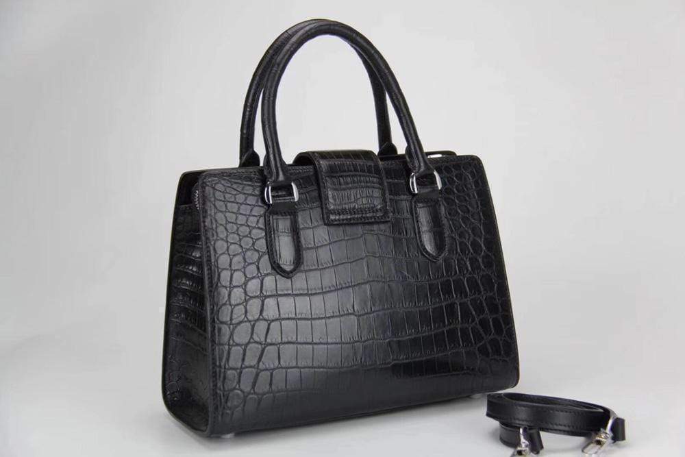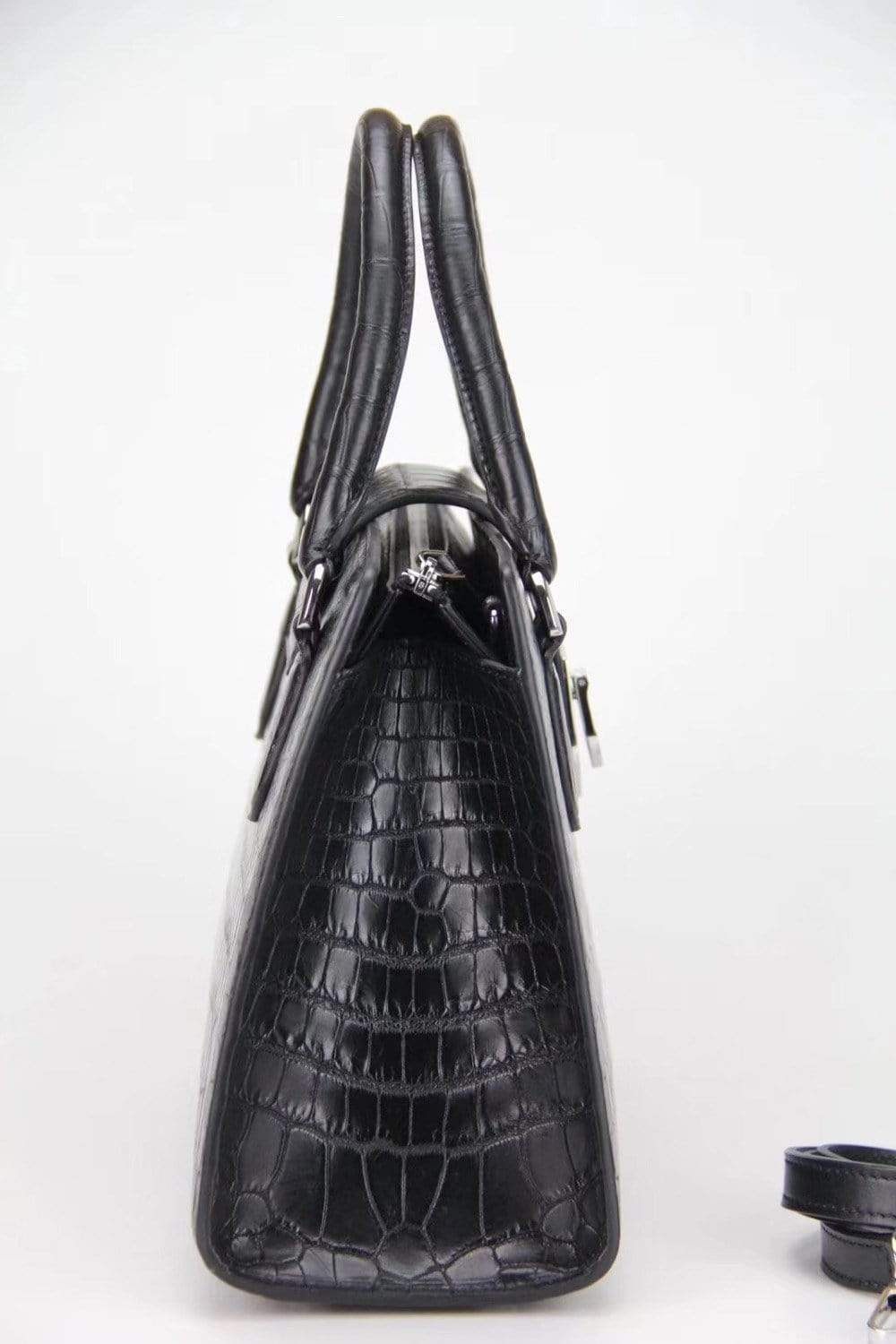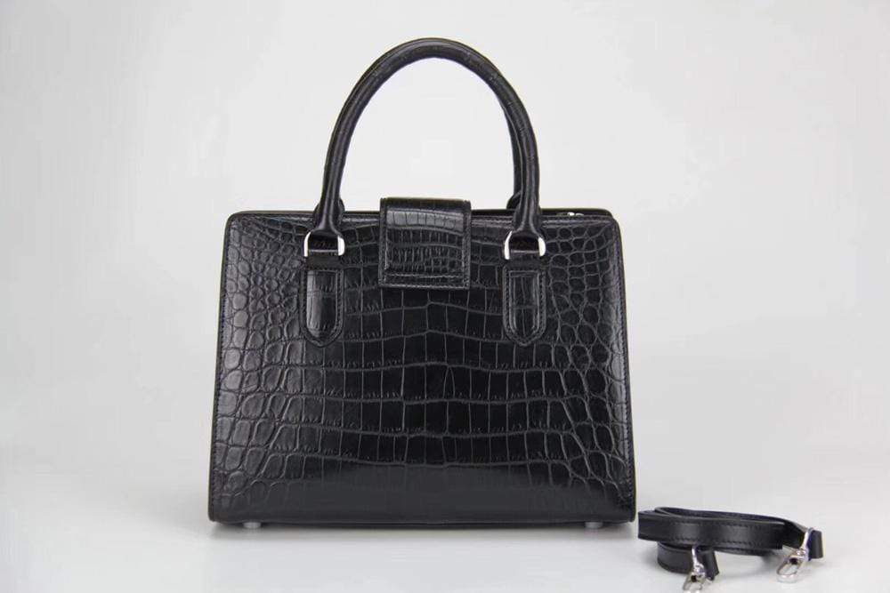 Genuine Crocodile Leather Top Handle Tote Bag Black