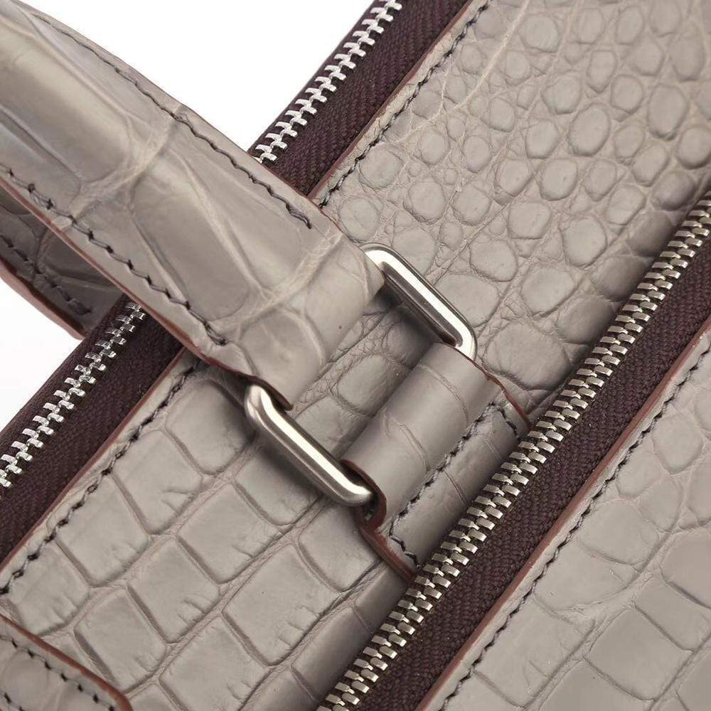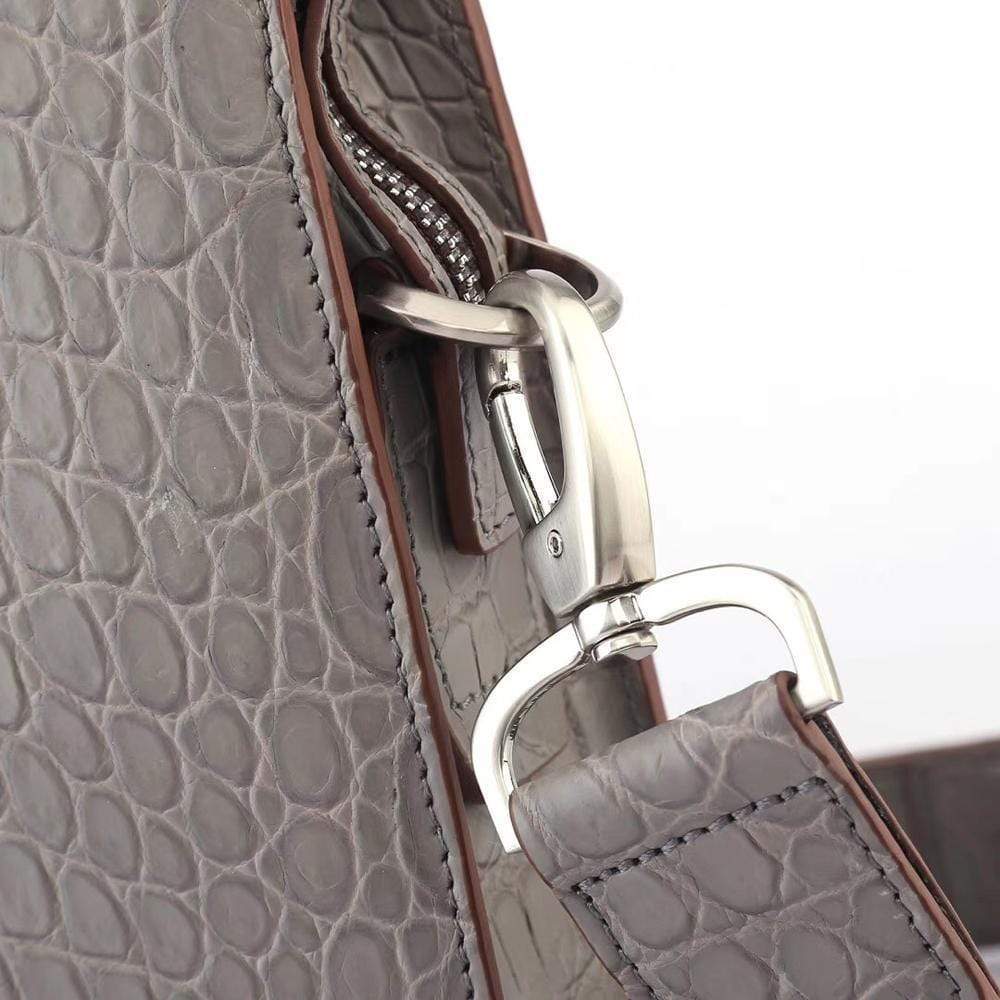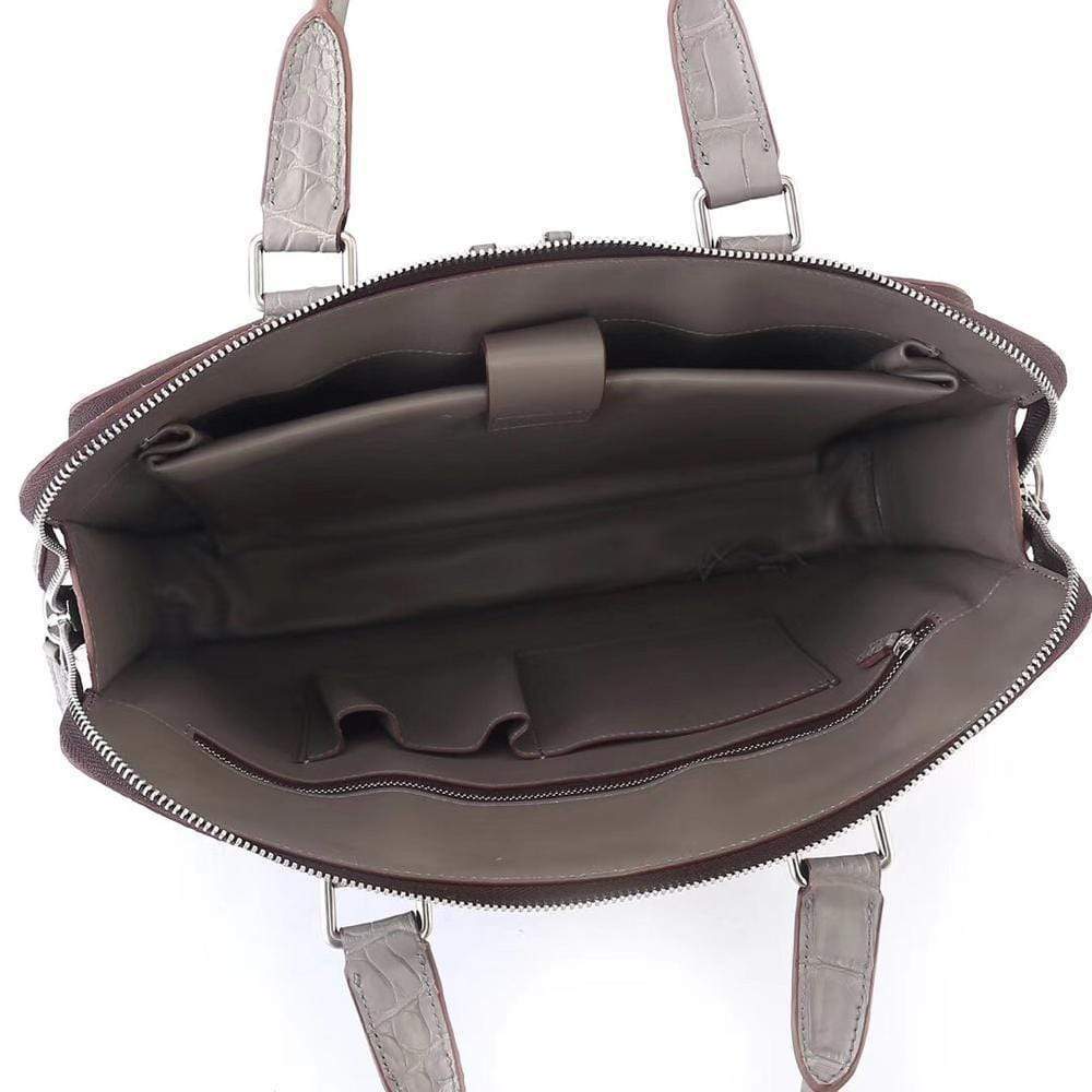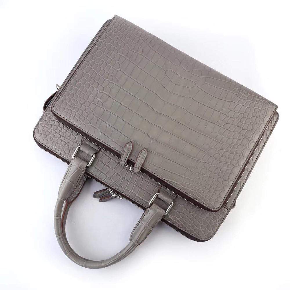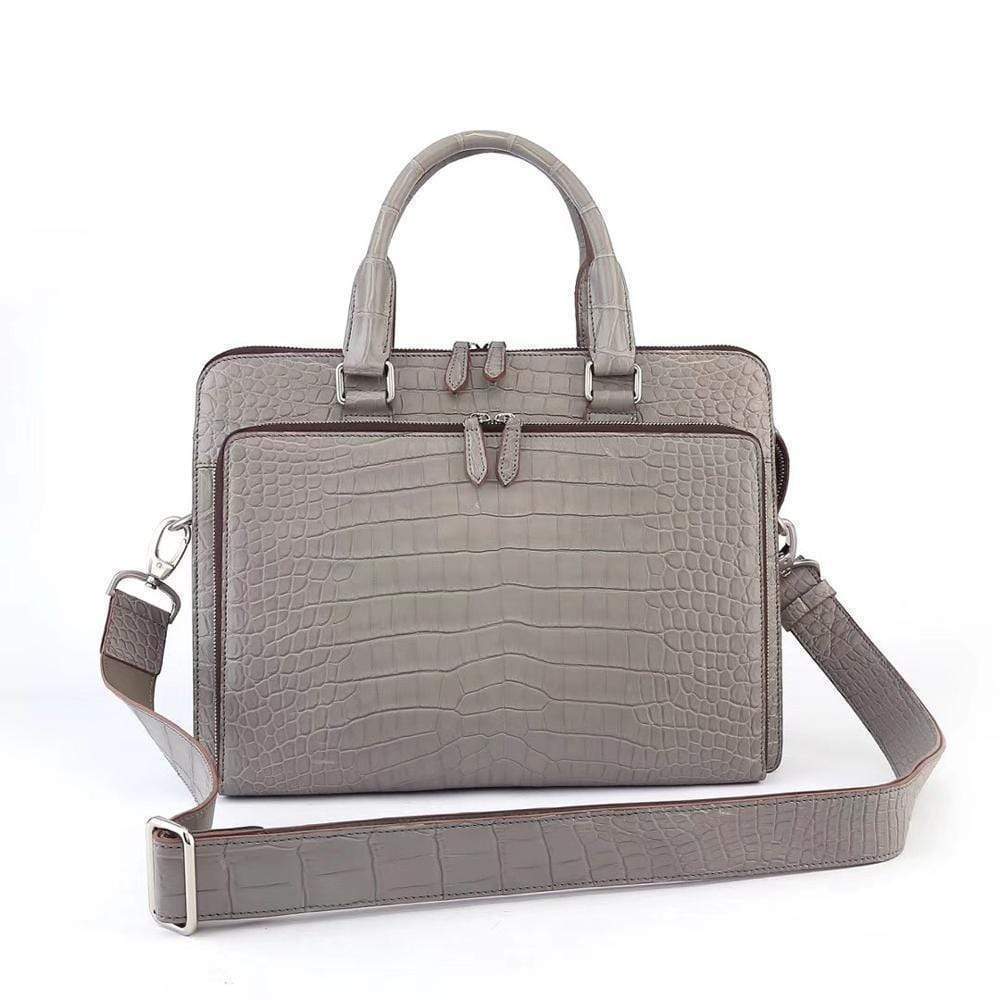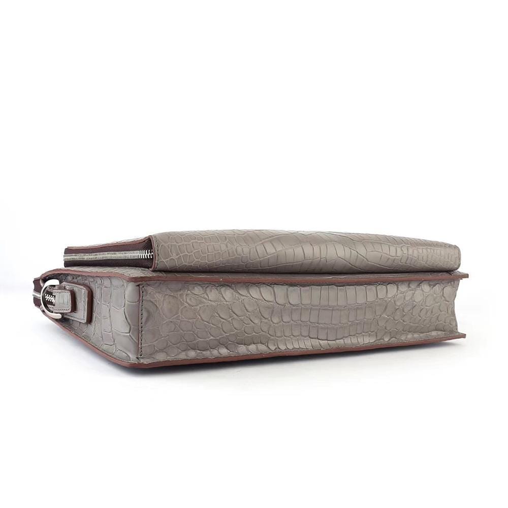 Bag: Preorder Men's Crocodile Leather Briefcase with Front Zip Pocket Dark Grey