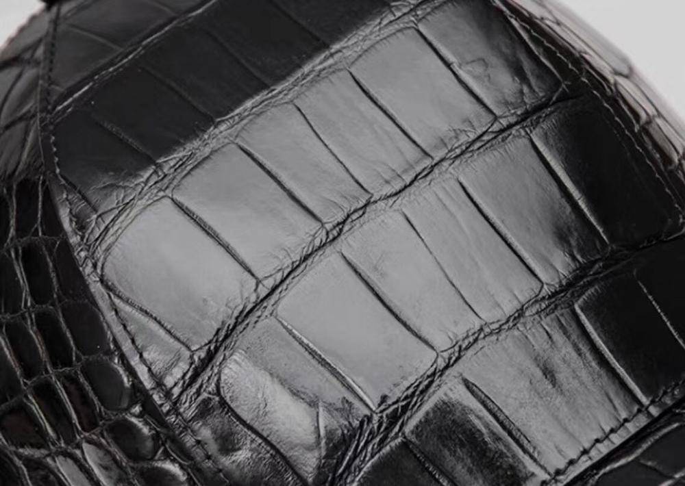 Exotic beautiful crocodile leather with silver hardware.Panelled crown .