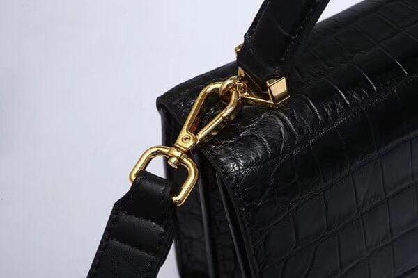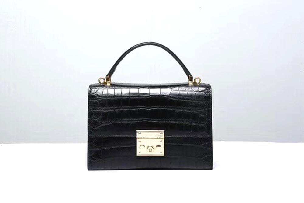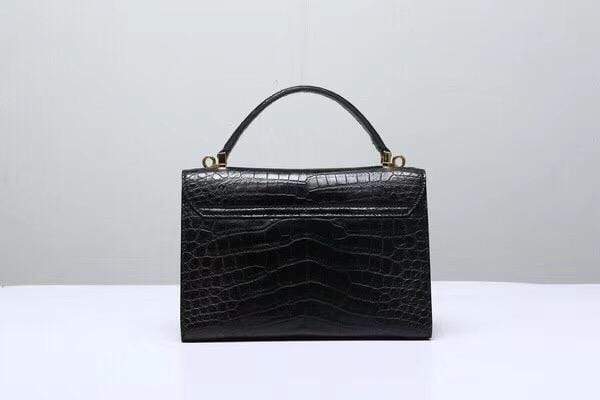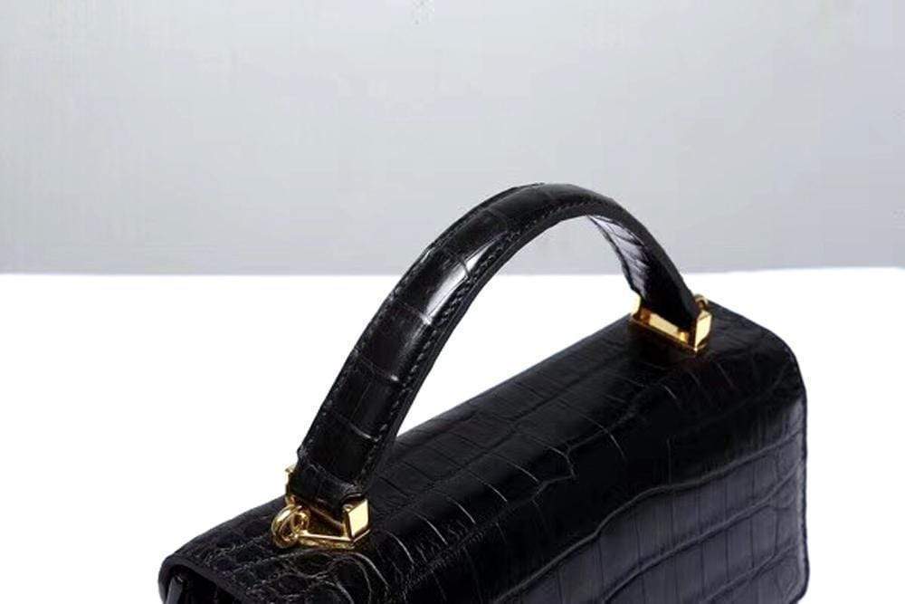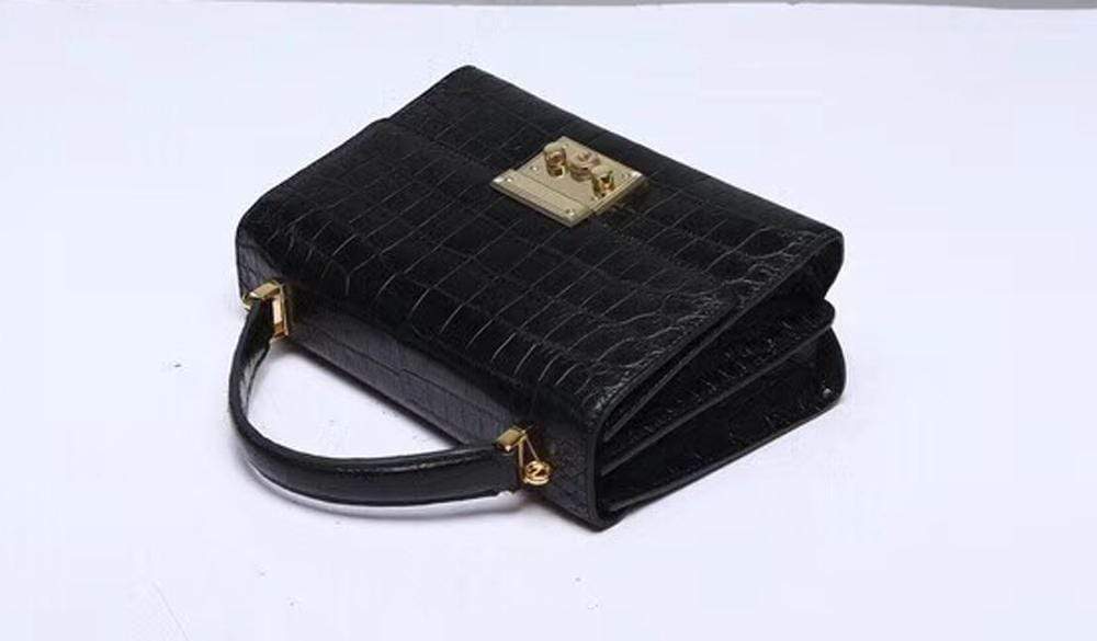 Bag: Women's Genuine Crocodile Leather Tote Top Handle Bags Black