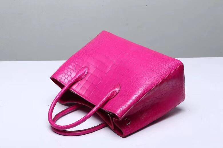 Túi xách tay da bụng cá sấu thật cho phụ nữ màu đào 35cm