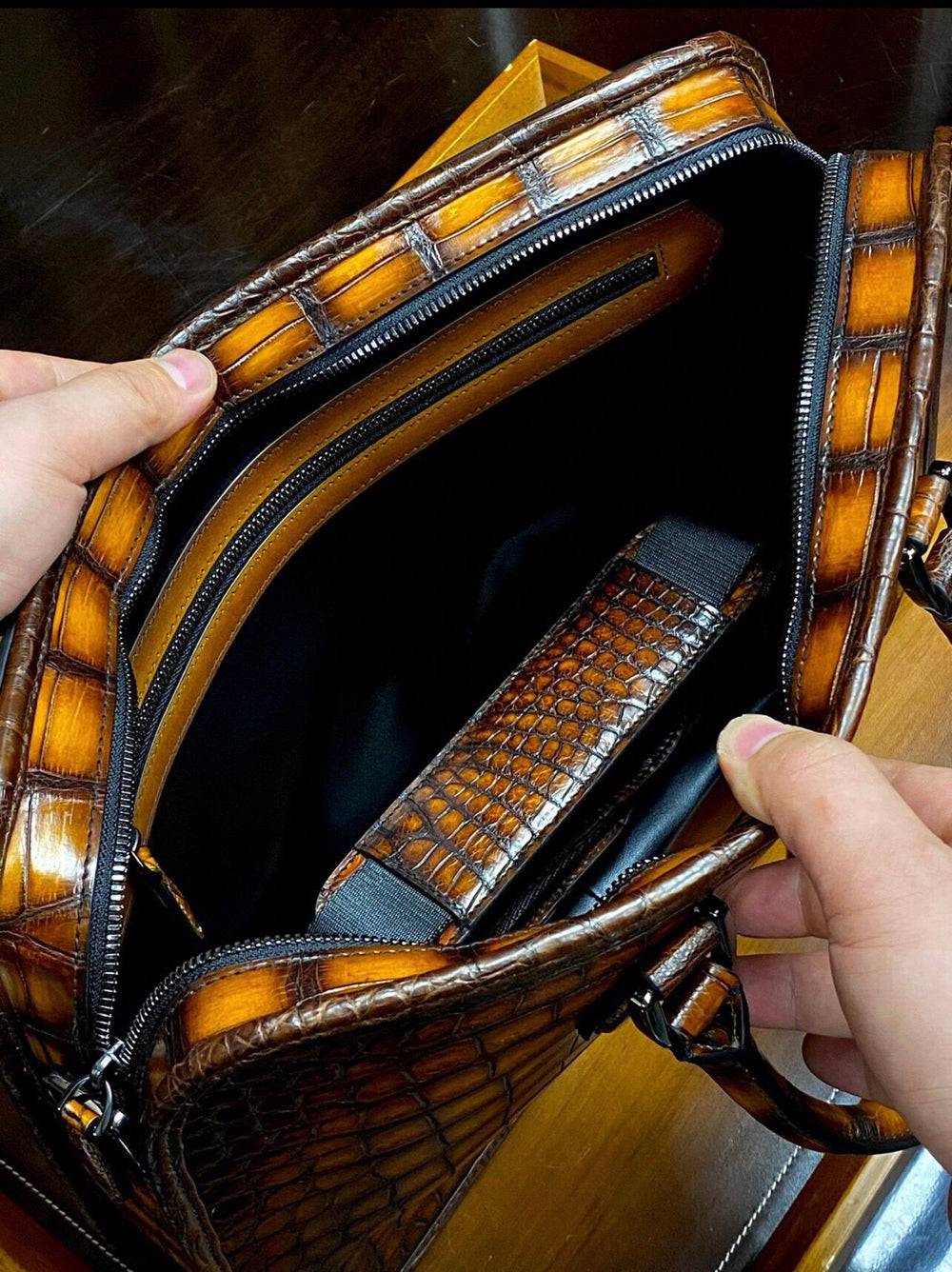 Men's Vintage Crocodile Leather Briefcase With Zip Front