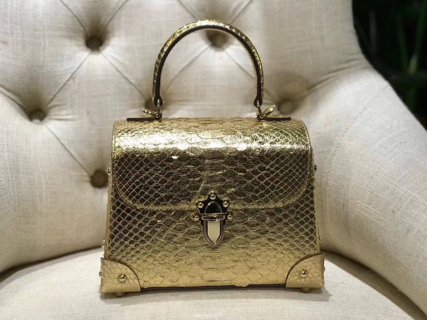 Name: Mini Python Leather Rivet Top Handle Cross Body Bags Gold