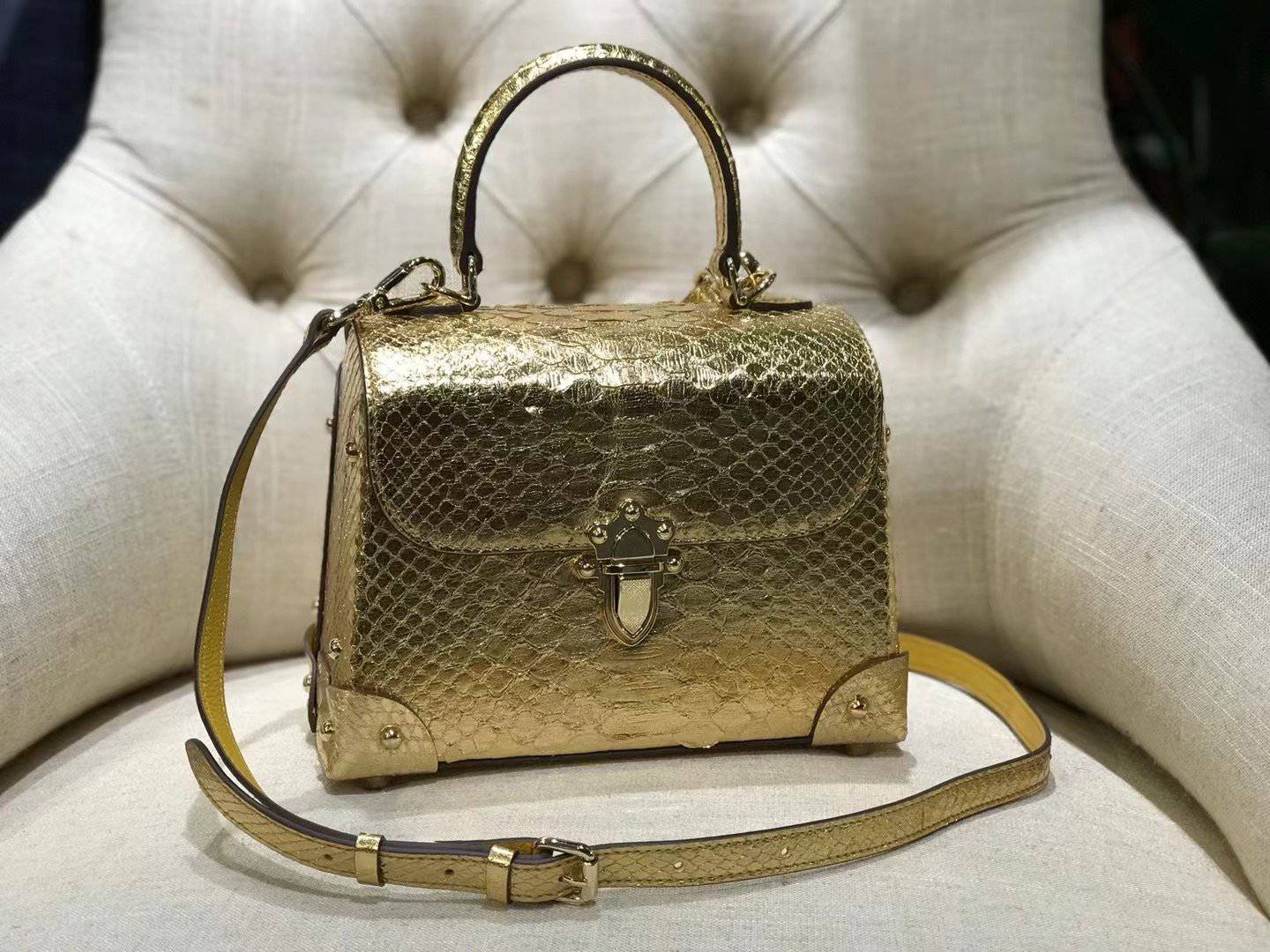 Túi Đeo Chéo Mini Da Python Có Tay Cầm Trên Đinh Tán Màu Vàng