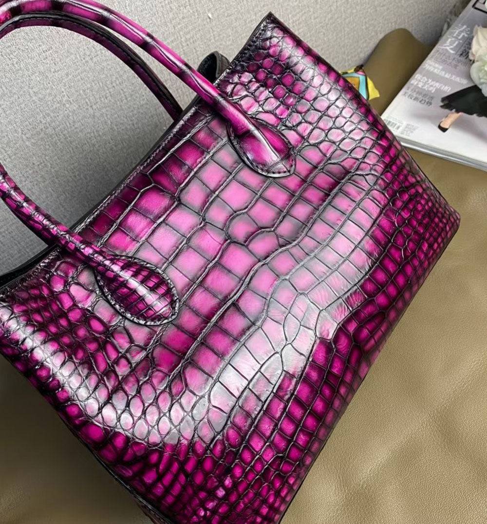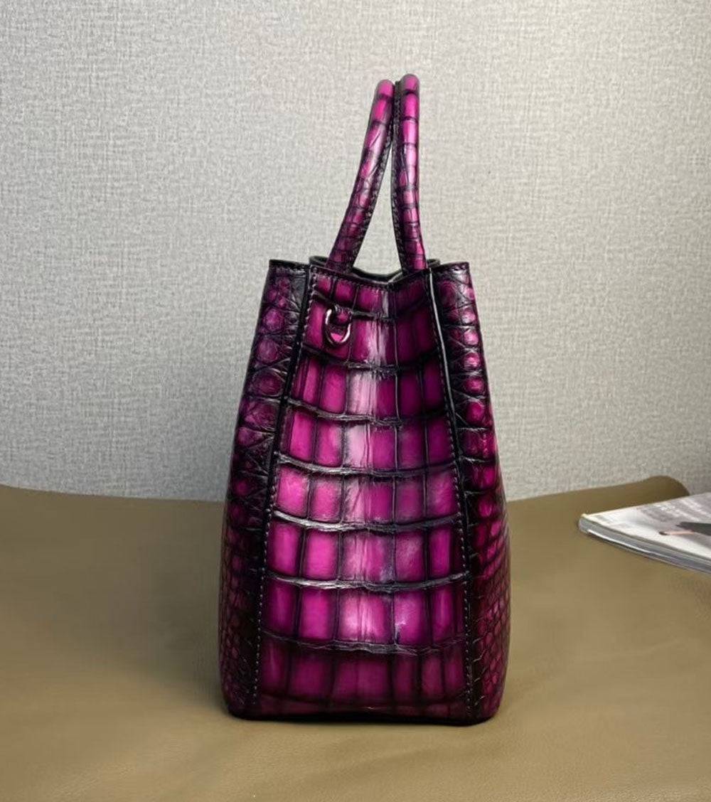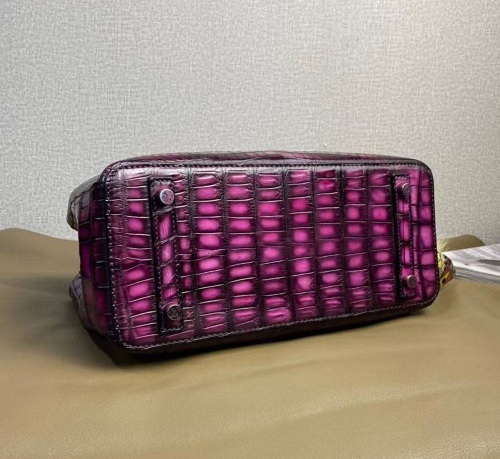 Túi xách tay quai trên da cá sấu thật cổ điển Vintage Túi đeo vai túi tote ví cầm tay túi messenger 30cm Màu tím