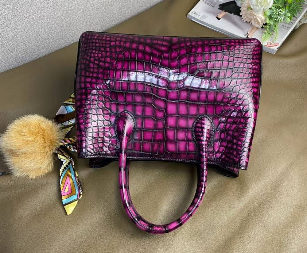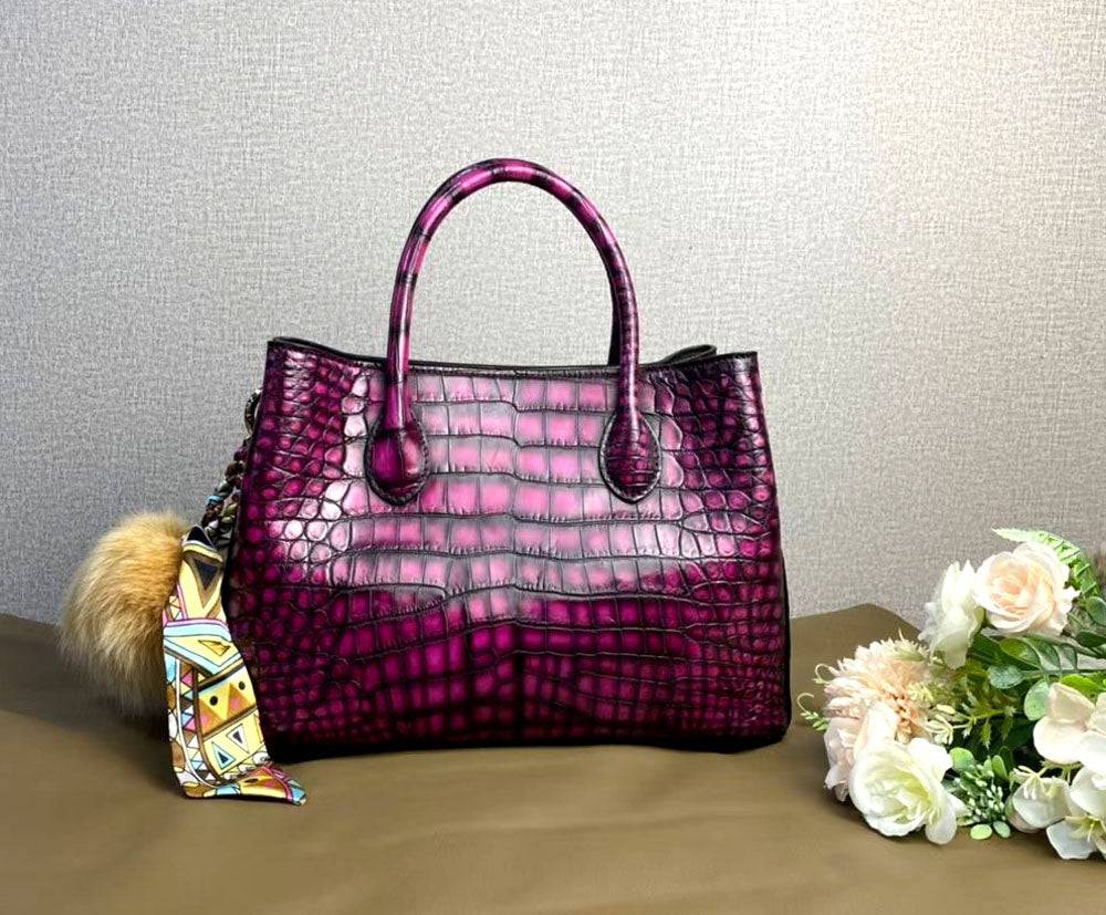 Bag: Vintage Genuine Crocodile Leather Top Handle Satchel Handbag Shoulder Bag Tote Purse Messenger Bags 30cm Purple